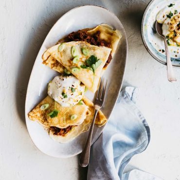 Flensjes met pulled pork en yoghurtsaus