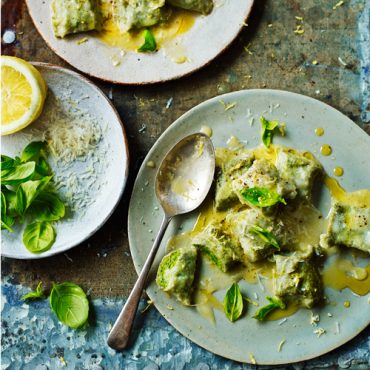 Volkorenravioli met ricotta & basilicum