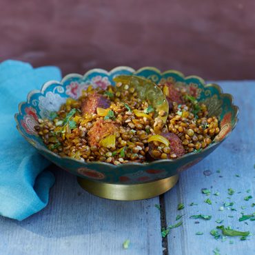 Linzen met saffraan & rauwe ham