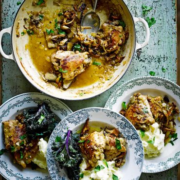 Stoofpot van kip & bospaddenstoelen