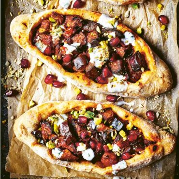 Turkse Pide met spinazie en aubergine