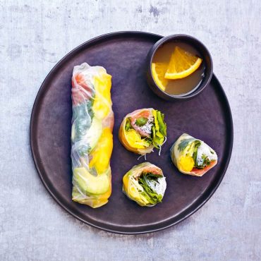 Spring rolls met zalm en mango