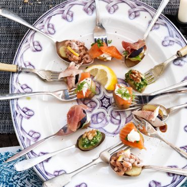 Havermoutblini’s met tonijn, zalm & rivierkreeftjes