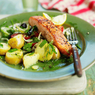 Hemelse zalmsalade met krieltjes