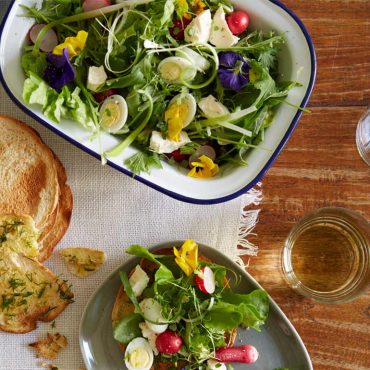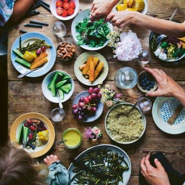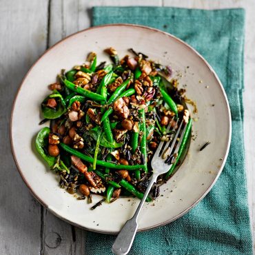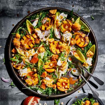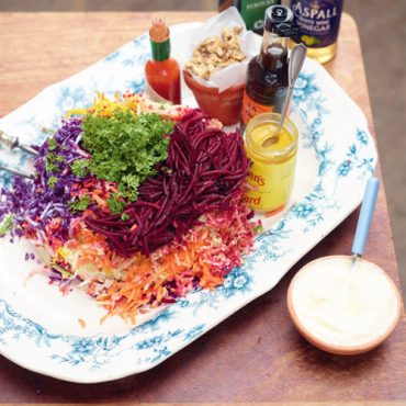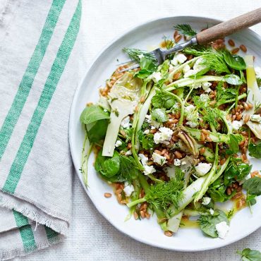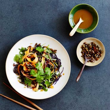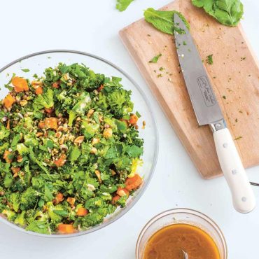 Maaltijdsalade met broccoli en linzen, pindasaus