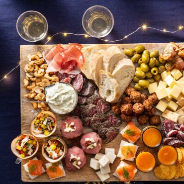 Voordat het kerstdiner echt-echt begint, vinden we het heerlijk om te starten met een feestplank vol lekkere hapjes. Deze borrelplank bevat van alles wat: rosbief, gerookte kipsalade, landham met blauwe-kaasmousse… Merry X-mas allemaal, geniet ervan!