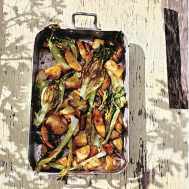 - 750 g kruimige aardappels, geschild en in grove stukken